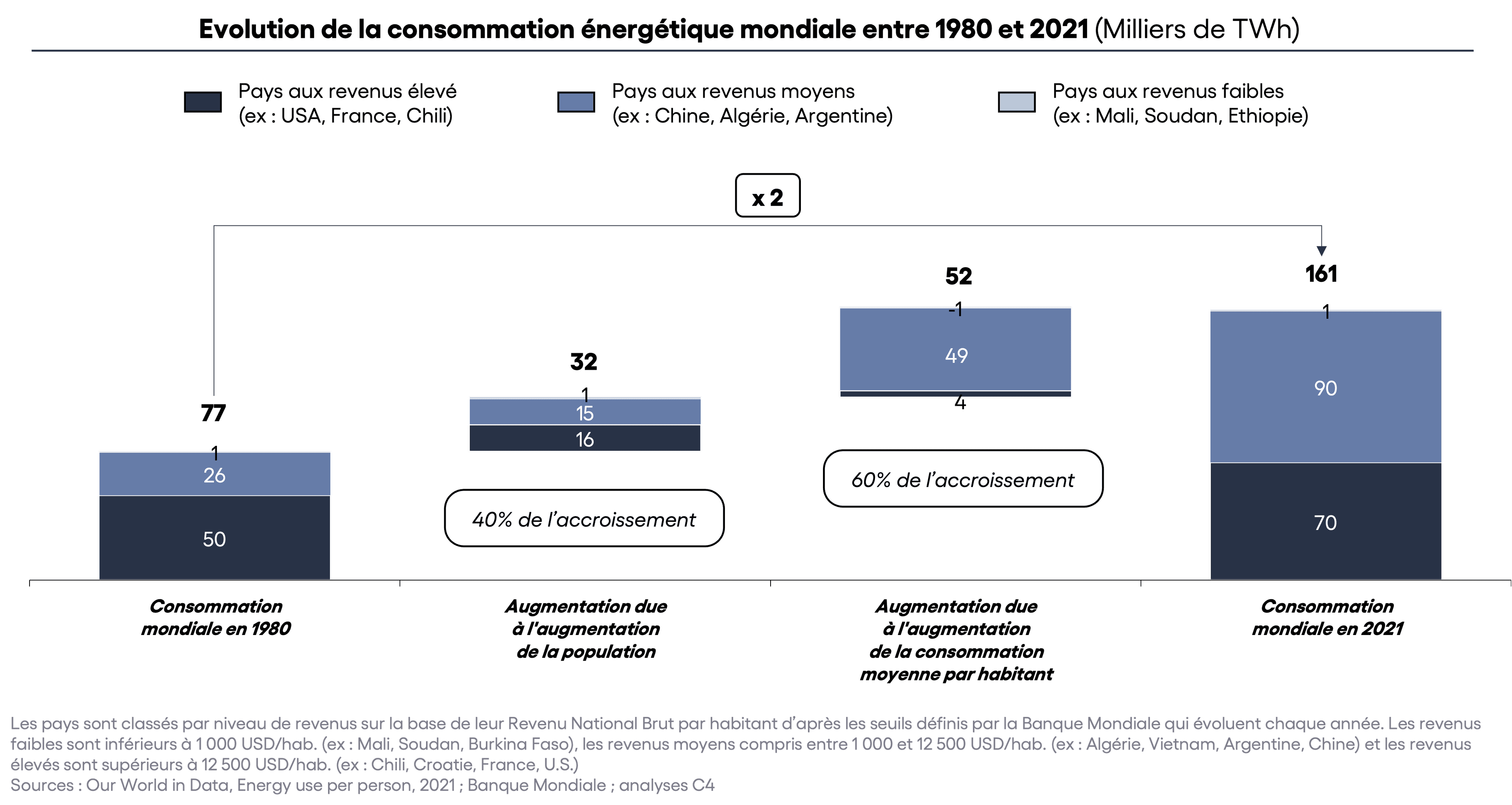 Enfin, les pays aux revenus faibles n’ont que très peu d’impact sur l’évolution de la consommation d’énergie mondiale.