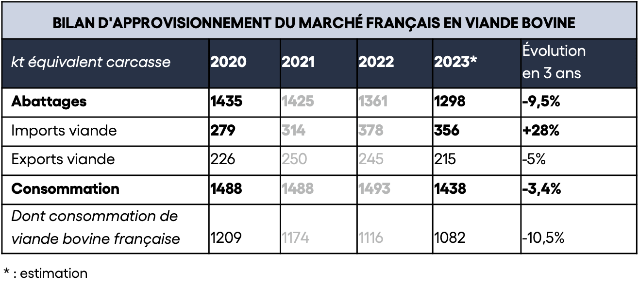 La baisse de la consommation n’est pas à la hauteur de la baisse du cheptel ; cet écart est compensé par une augmentation des importations