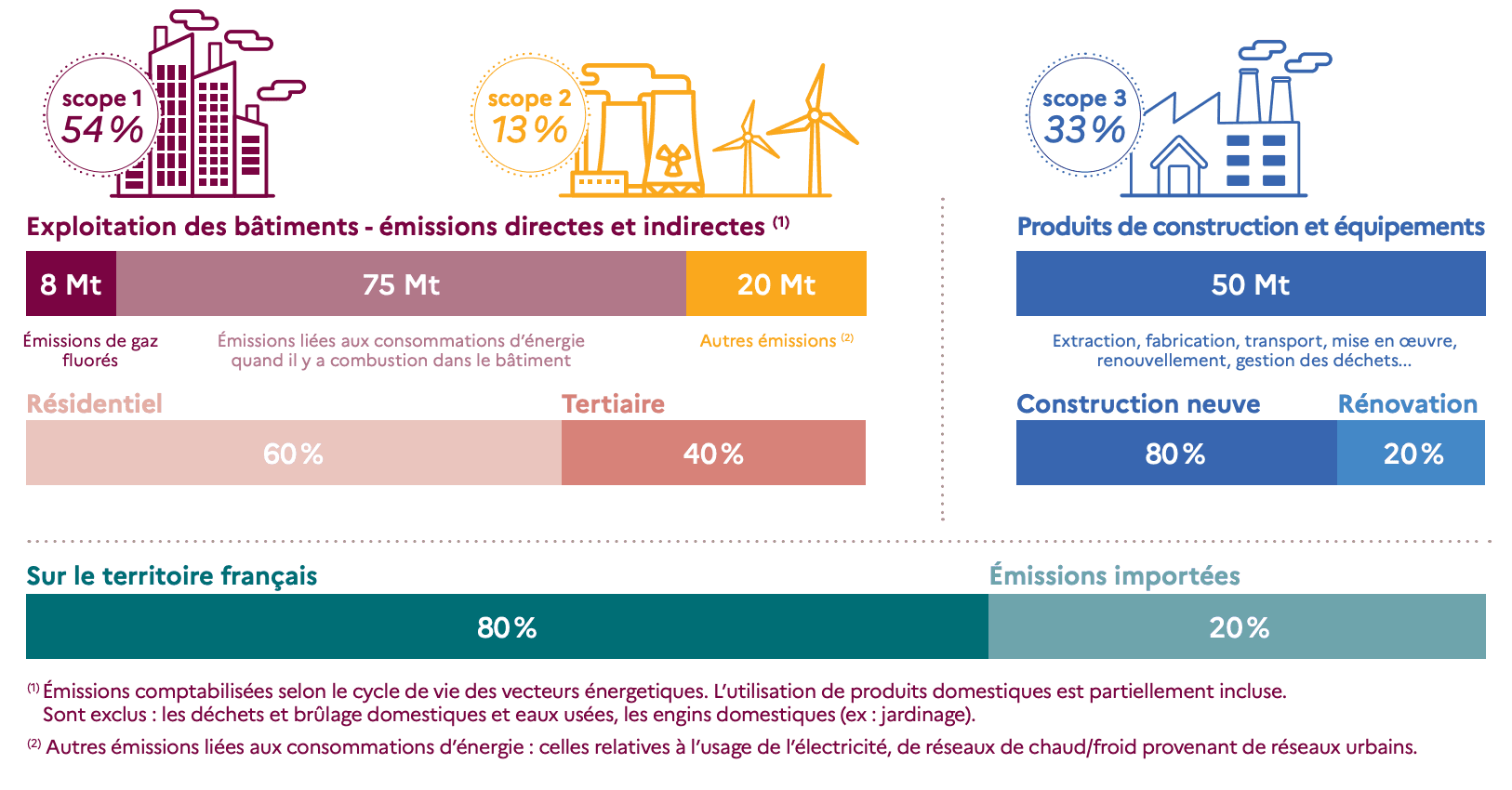 La décarbonation du secteur du bâtiment se structure progressivement en France. Avec la RE2020, une brique centrale a été posé pour la décarbonation de la construction neuve de la prochaine décennie. Cependant, les émissions du secteur du bâtiment ne sont pas liées qu’aux matériaux des bâtiments neufs. En effet, le parc de bâtiments de 2050 est déjà majoritairement constitué (75%[1]) et les émissions actuelles du bâtiment proviennent à 67% de l’usage[2] (principalement la consommation d’énergie pour le chauffage). Le résidentiel représente 60% des émissions, face au tertiaire (40%). La rénovation des logements existants, est donc un axe indispensable pour réduire les émissions globales du secteur.