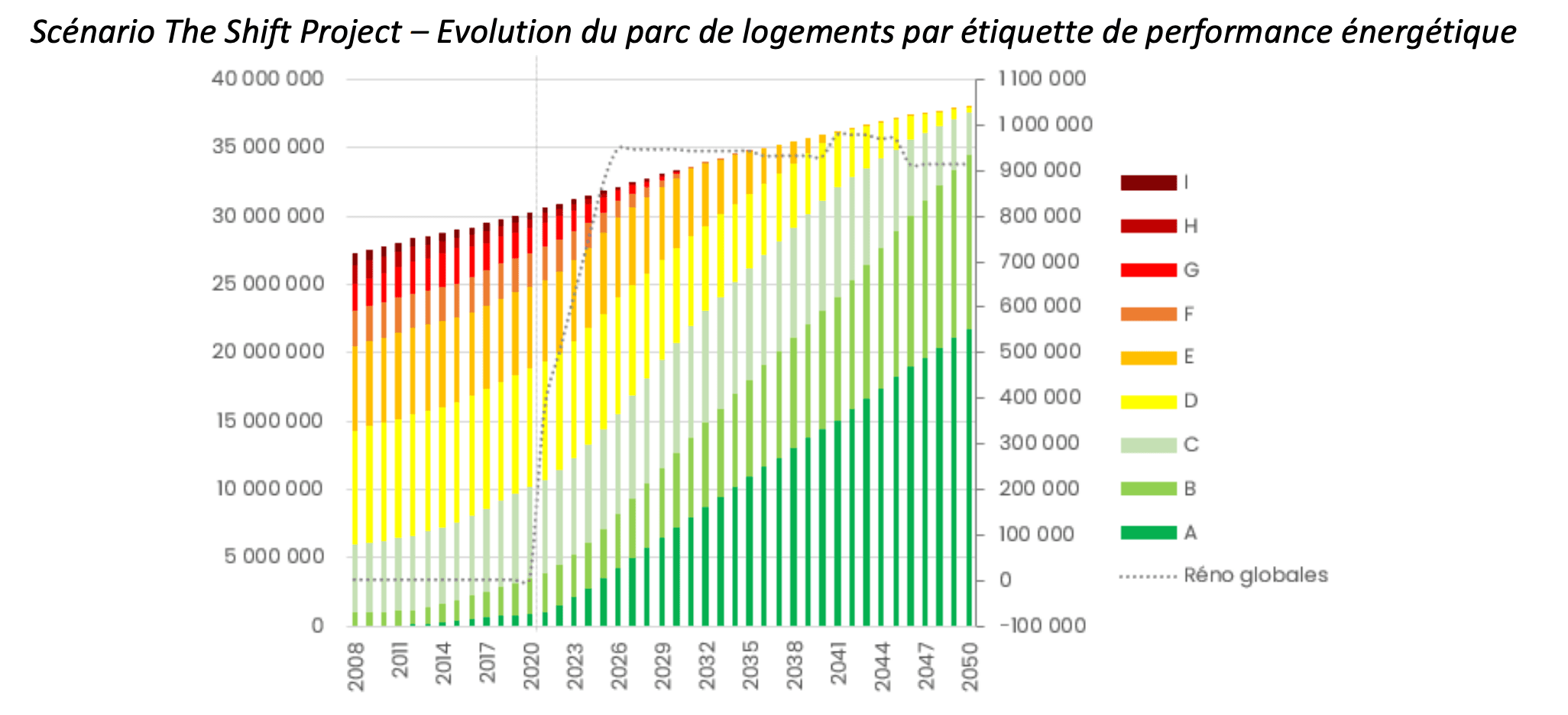 Pourtant, dans tous les scénarios qui étudient l’atteinte de la neutralité carbone à horizon 2050[9], la massification des rénovations performantes est indispensable, avec en priorité la rénovation de toutes les passoires énergétiques[10].