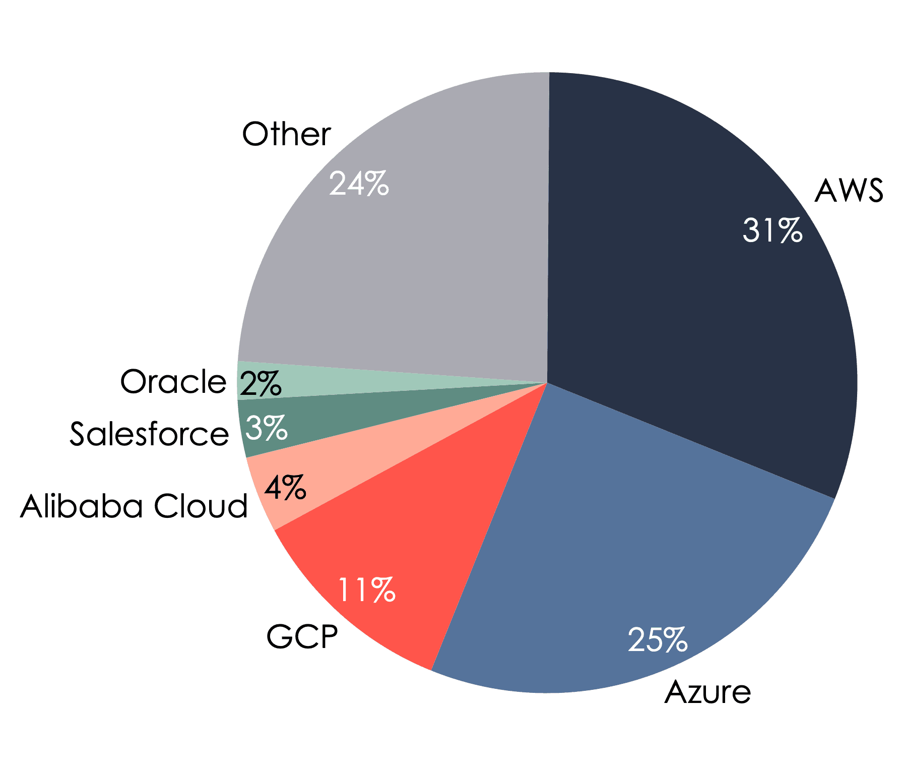 The cloud market is still dominated by large-scale cloud providers (commonly referred to as Hyperscalers), such as the ‘Big Three’ – Amazon’s AWS, Microsoft’s Azure, and Google’s GCP.