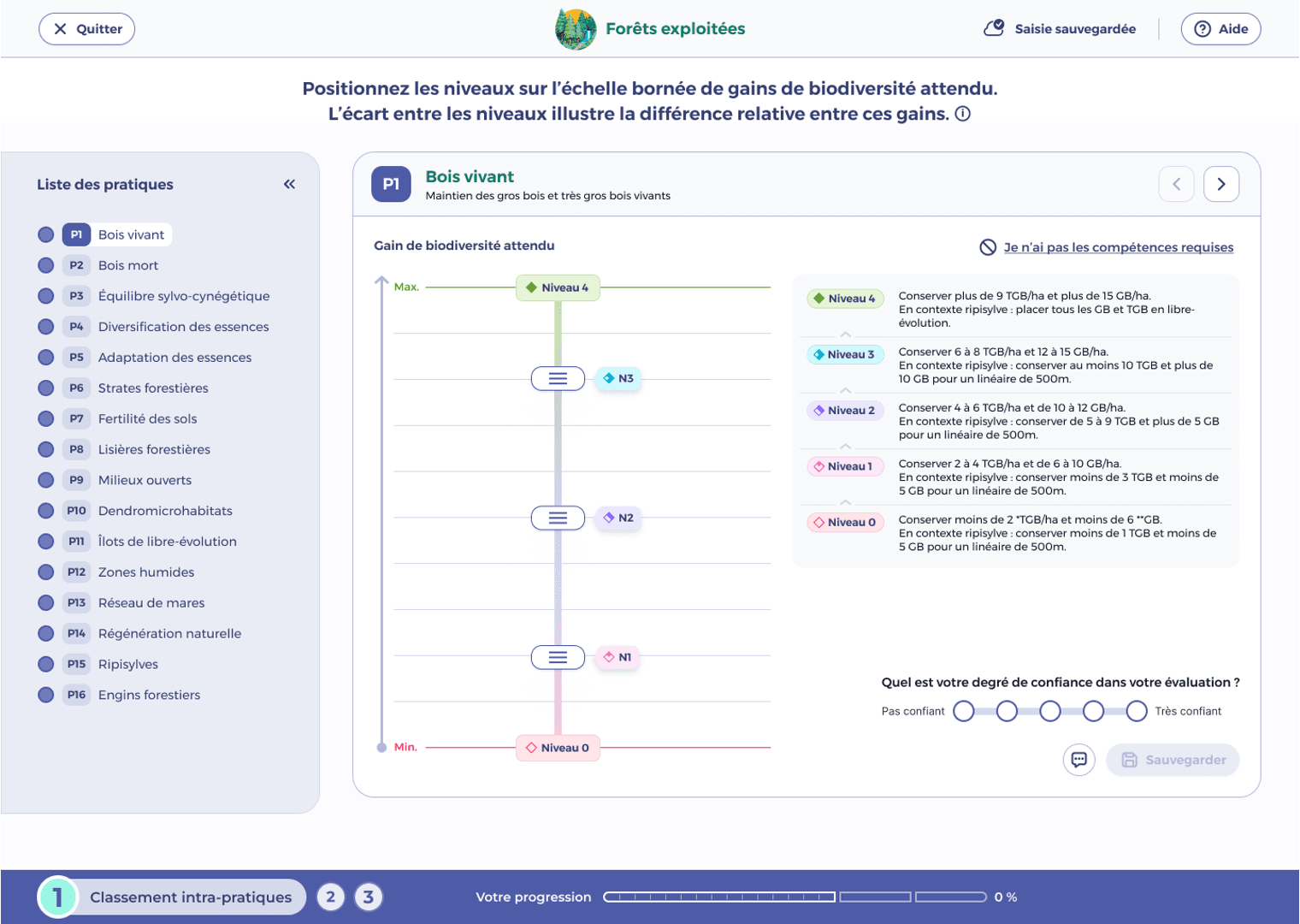 This first part, led by the MNHN, aims to develop a method to identify and prioritize practices favorable to biodiversity for a given socio-ecosystem (defined by a type of land use and bioclimatic conditions). The method relies on participatory science: by mobilizing enough experts - practitioners, ecologists, naturalists, who i) define the good practices to be implemented for a given socio-ecosystem and ii) rank these practices against each other on a scale of biodiversity gain (from min to max), we obtain a reference ranking and a biodiversity score for each practice. A first proof of concept was carried out in 2025, on two socio-ecosystems: arable land and managed forests, in Western Europe temperate climate. This part continues in January 2026, with other developments planned. More information on the Puzzling biodiversity website : https://www.puzzling-biodiversity.org/fr/