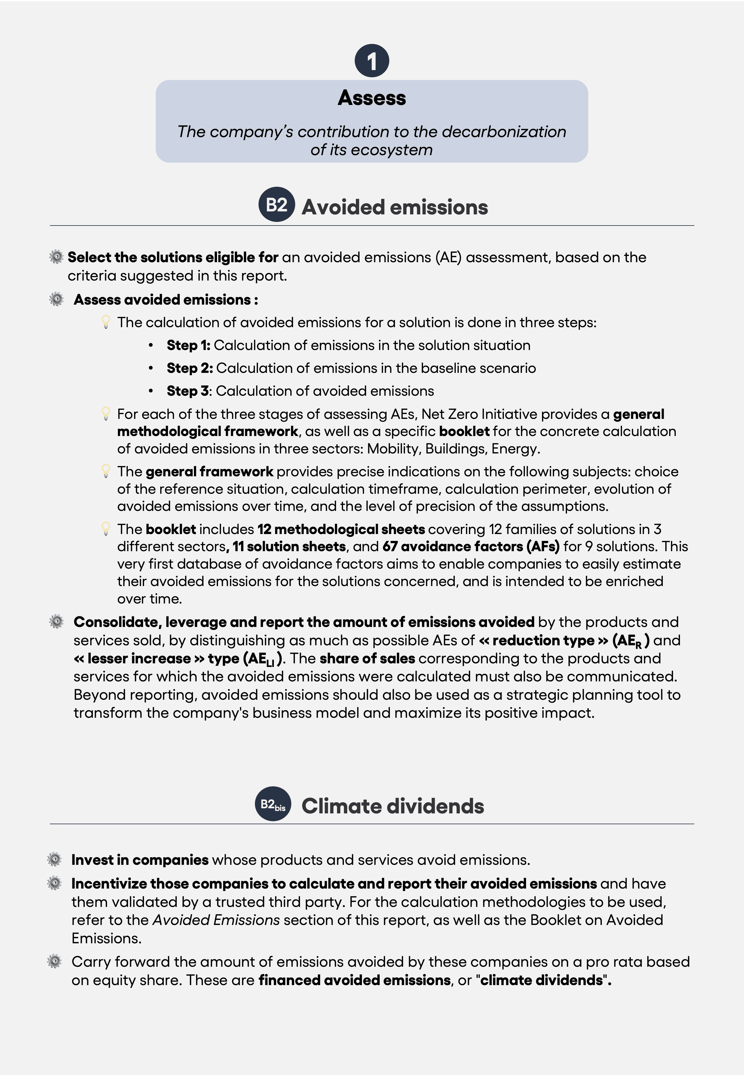 - The Pillar B Guide - Calculating and leveraging avoided emissions, which aims to provide organizations with tools to calculate their various contributions to decarbonization (emissions avoided by products and services, climate dividends, carbon finance)