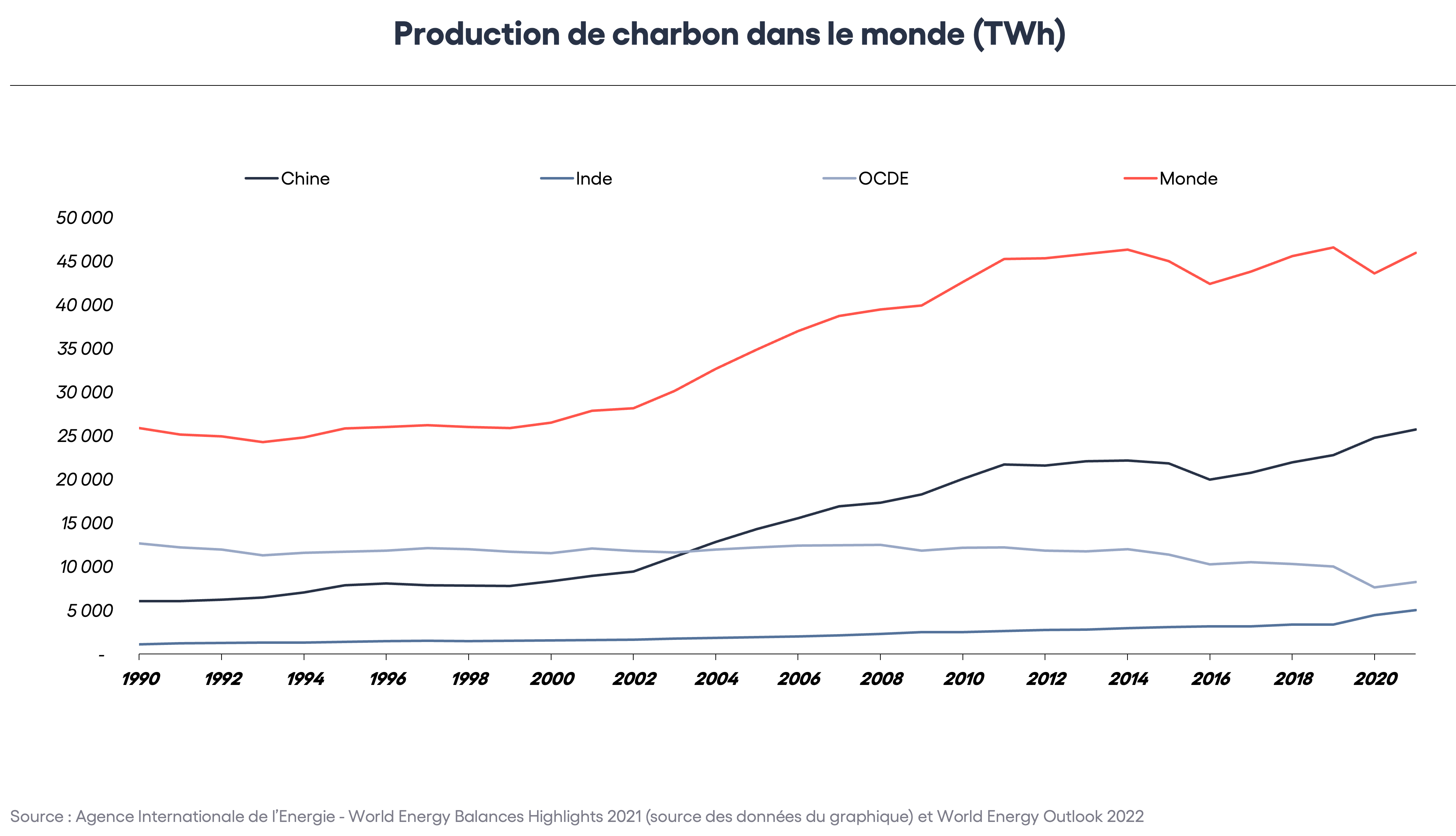 Et pourtant, la tendance actuelle est très différente. En 2020, la production mondiale de charbon n’a pas diminué mais a augmenté de 4% par rapport à 2010.