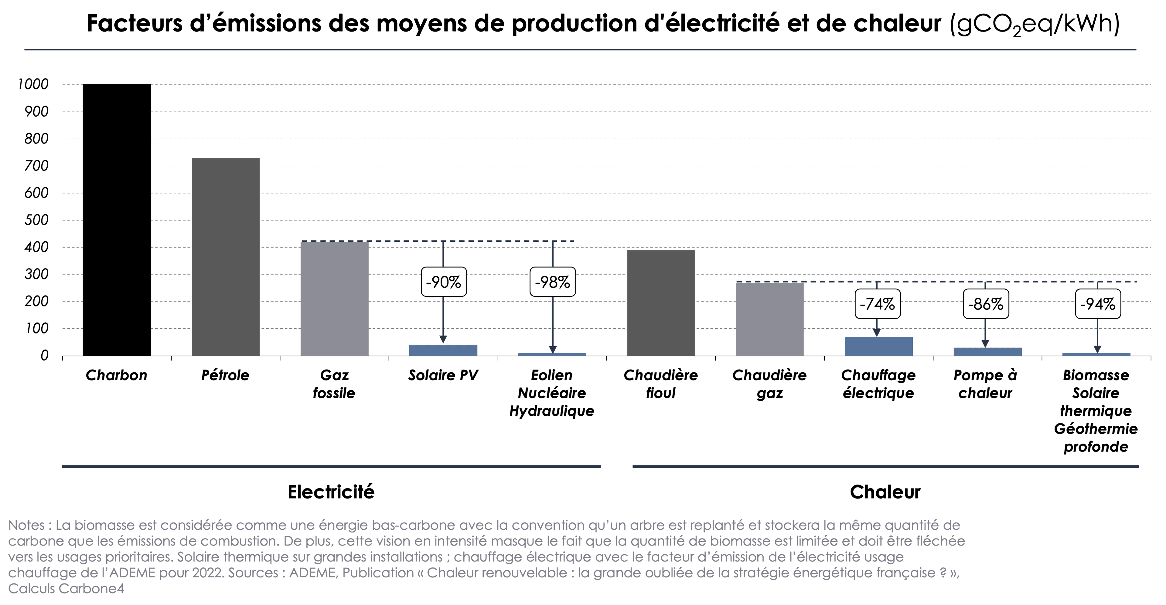 De plus, le gaz fossile est certes moins émissif que le pétrole et le charbon mais reste très carboné par rapport aux alternatives bas-carbone. Pour la production d’électricité, l’utilisation de gaz fossile est au moins 10 à 40 fois plus carbonée que le solaire, l’éolien ou le nucléaire. Pour la production de chaleur, c’est 5 à 20 fois plus d’émissions que les pompes à chaleur, le biogaz ou le solaire thermique.