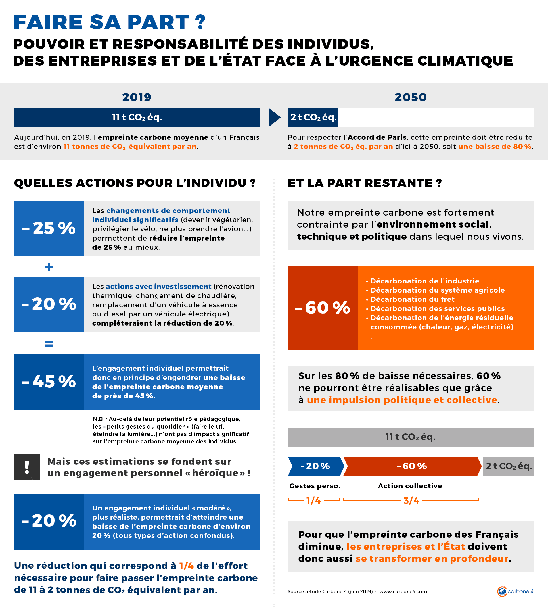 La responsabilité qui incombe aux pouvoirs publics et aux entreprises pour réduire l’empreinte carbone personnelle des Français est majeure.