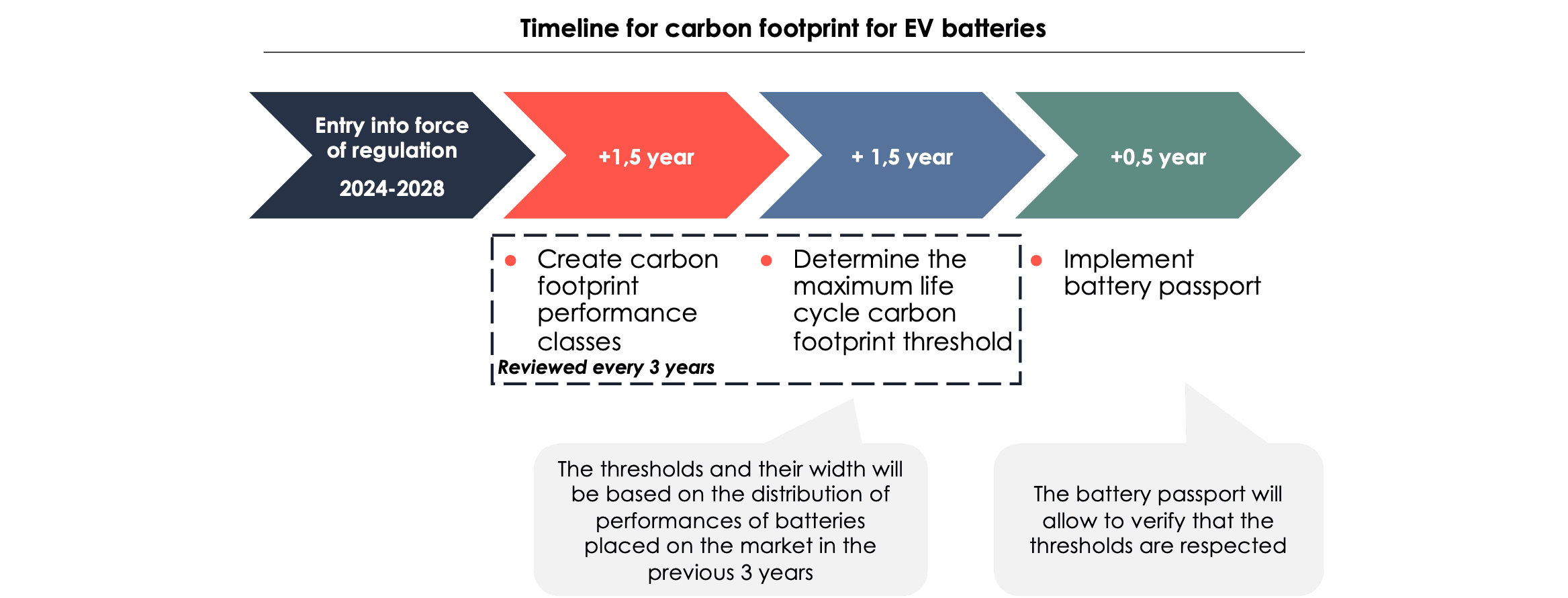 - Europe aims to develop a European low-carbon industry for Li-ion batteries, especially for mobility purposes. To achieve this objective, the regulatory framework is evolving and a new regulation on batteries and waste batteries has been voted by the European Parliament which is set to come into effect between 2024 and 2028. The regulation introduces the battery passport, which will provide information on the carbon footprint and the recycled content rate. The long-term objective is to ban high-carbon footprint batteries and promote low-carbon ones.