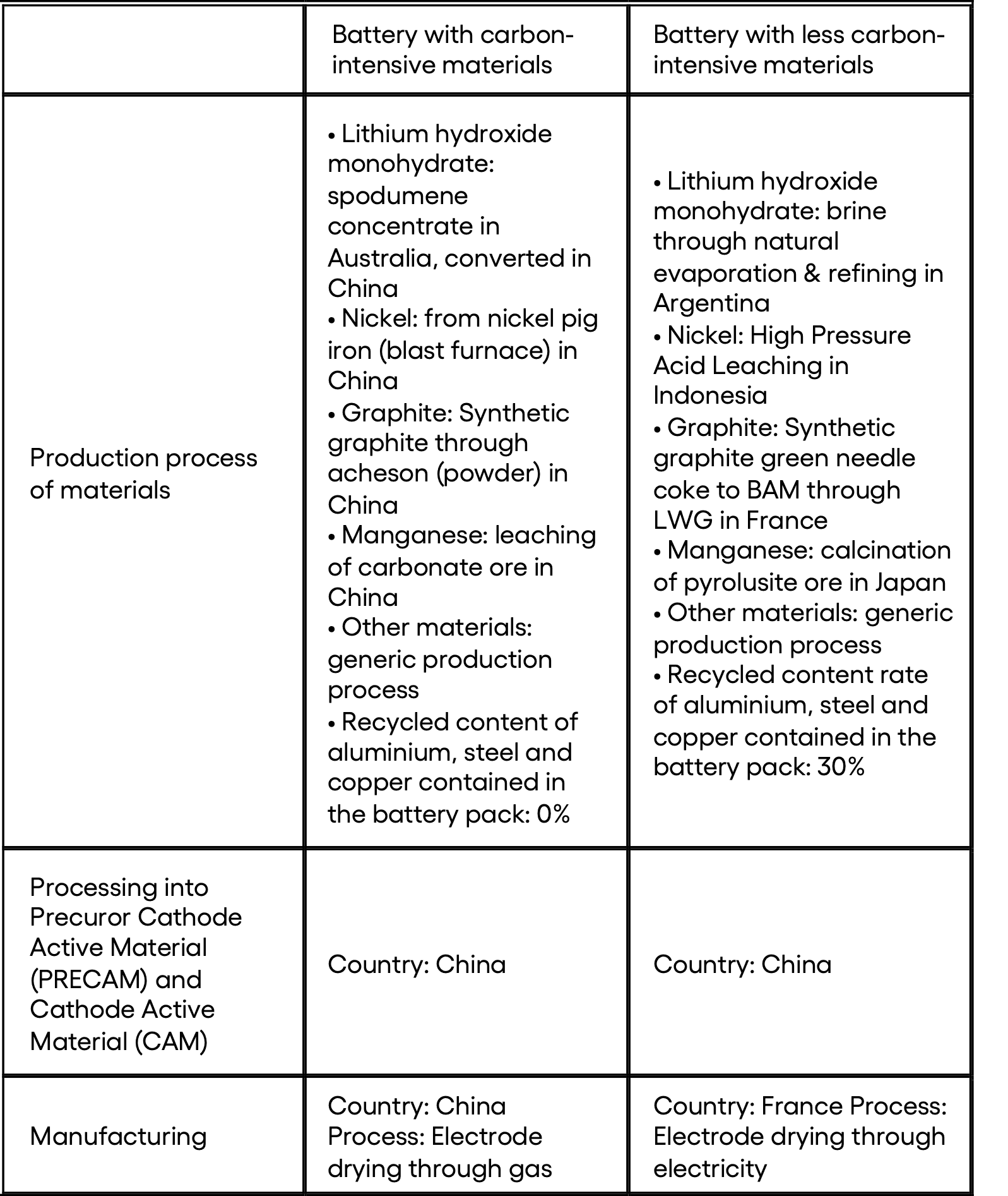 - Understand the carbon footprint differences between different batteries' value chains. The study revealed that manufacturing a battery NMC (811 52 kWh) in China with carbon-intensive materials could be three times more carbon intensive than in France with less emissive materials.