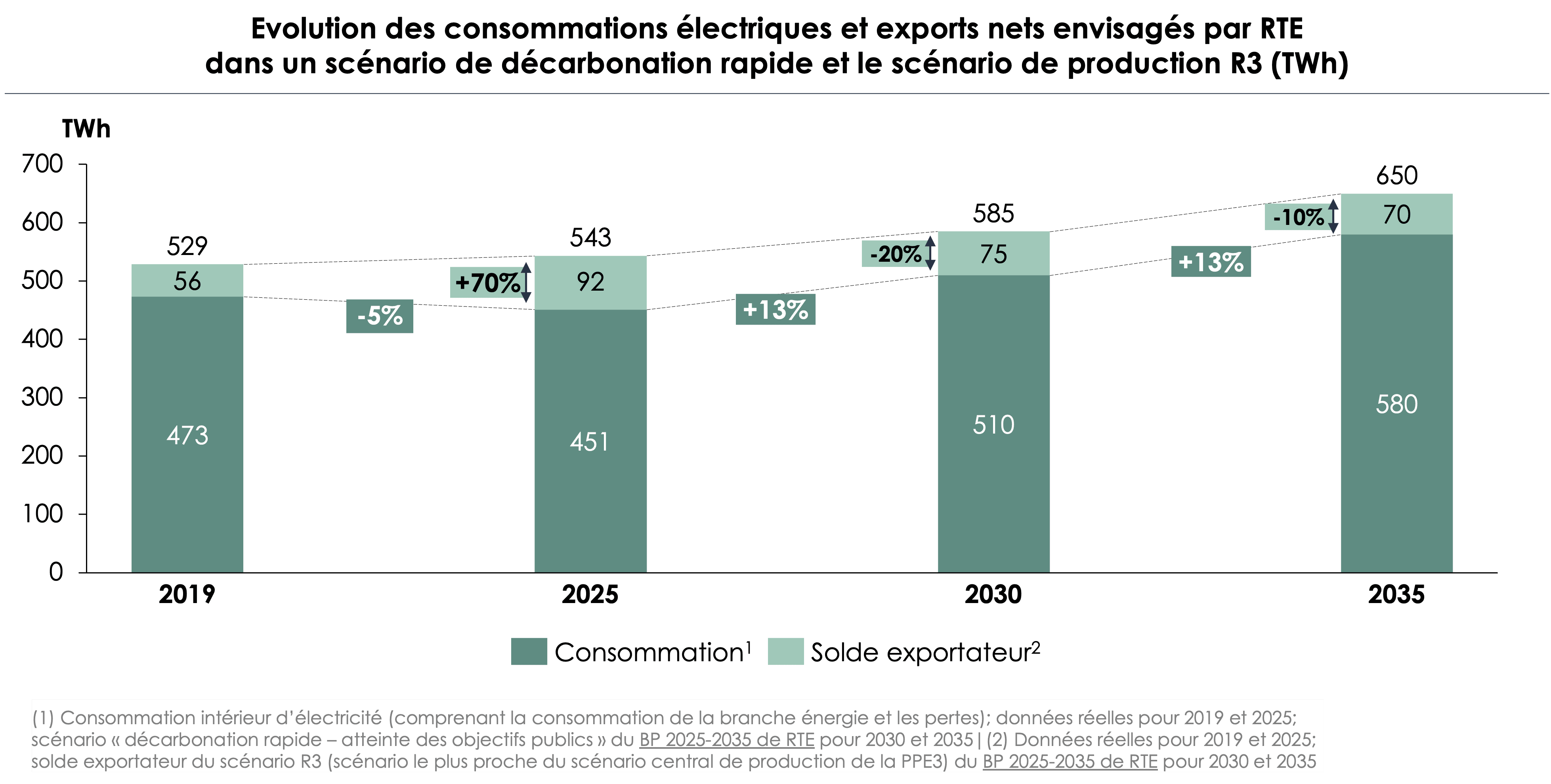 Ces objectifs de hausse importante de production de toutes les filières bas-carbone supposent que soit relevé le défi d’une augmentation rythmée et significative de la consommation d’électricité.