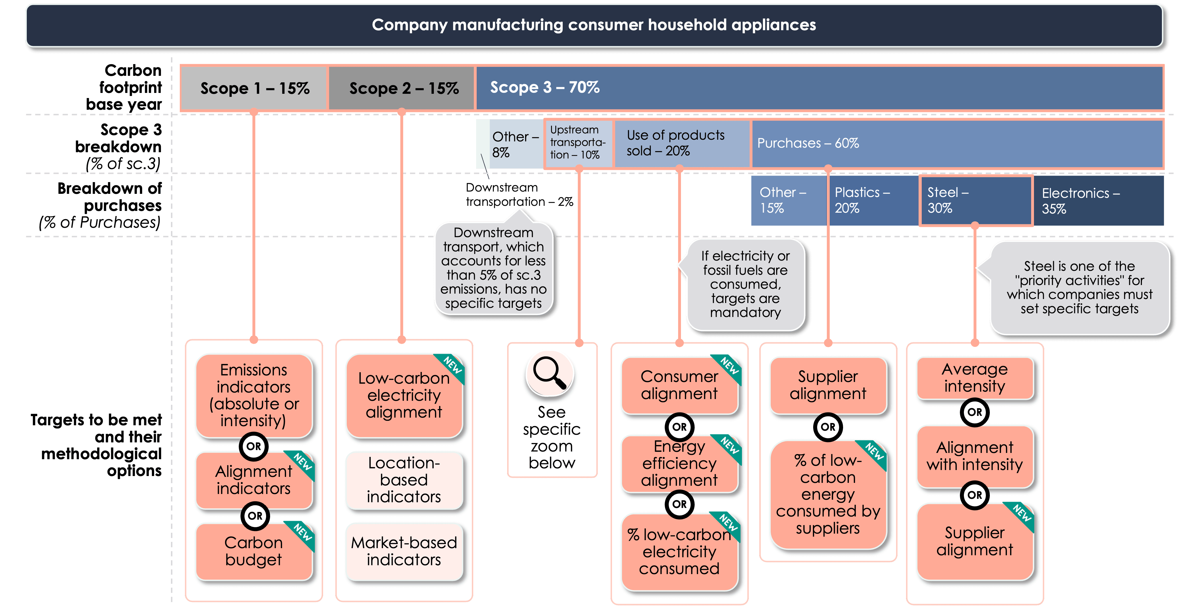 The new draft proposes a highly detailed approach for Scope 1, distinguishing between different types of activities and incorporating targets by lever of action. Among the new features: