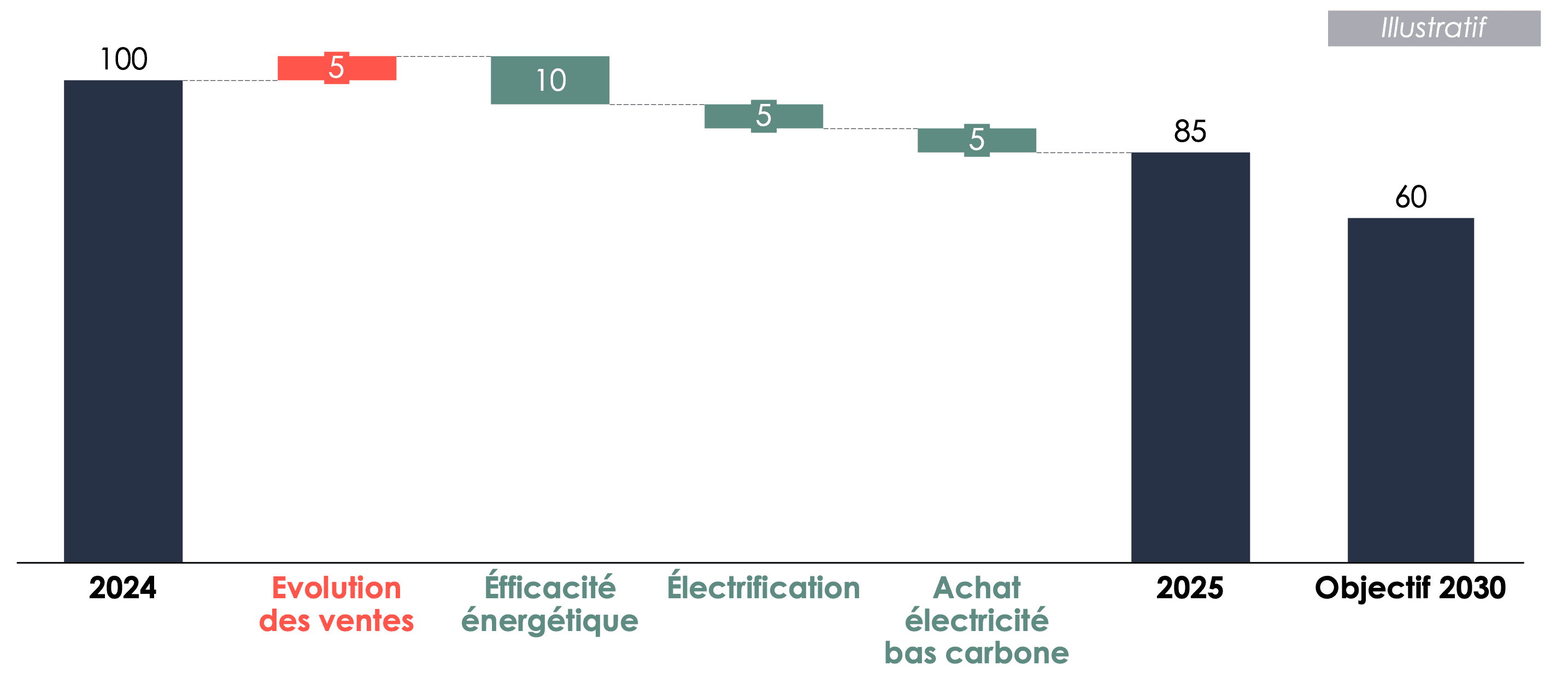 Contribution des différents leviers à l’évolution des émissions liées à la consommation d’énergie (illustratif)